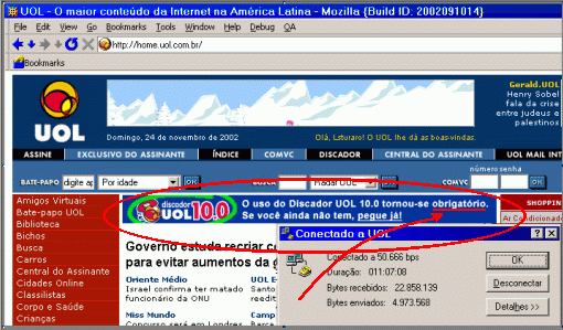 Lá já diz que é "obrigatório" o uso da meleca do discador deles, mas como se pode ver, eu ainda continuo usando o bom e velho dial-up do widnows. Aonde a UOL quer chegar?